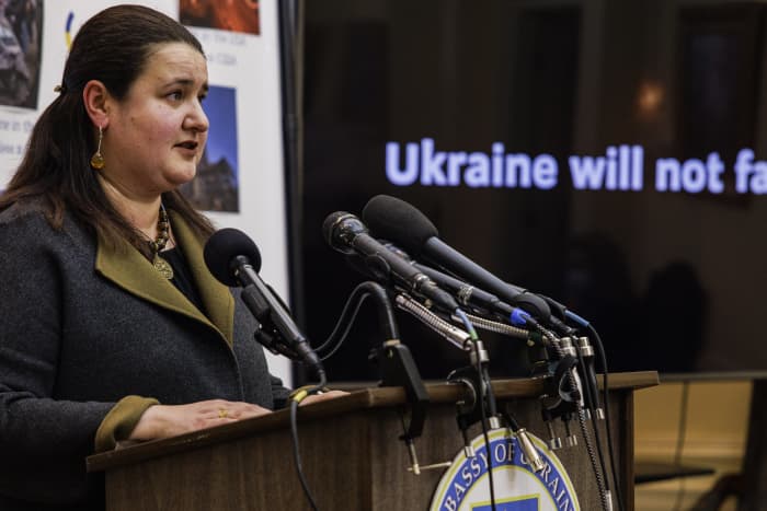 Ukrainian ambassador to the US calls on American... | TheHill Ukraine's Ambassador to the U.S. Oksana Markarova on Sunday called on American businesses to cut their ties with Russia as a way of supporting her "It's time to take sides and it's time to take [the] Ukrainian side because we are defending our home. We were peaceful, we never planned any...